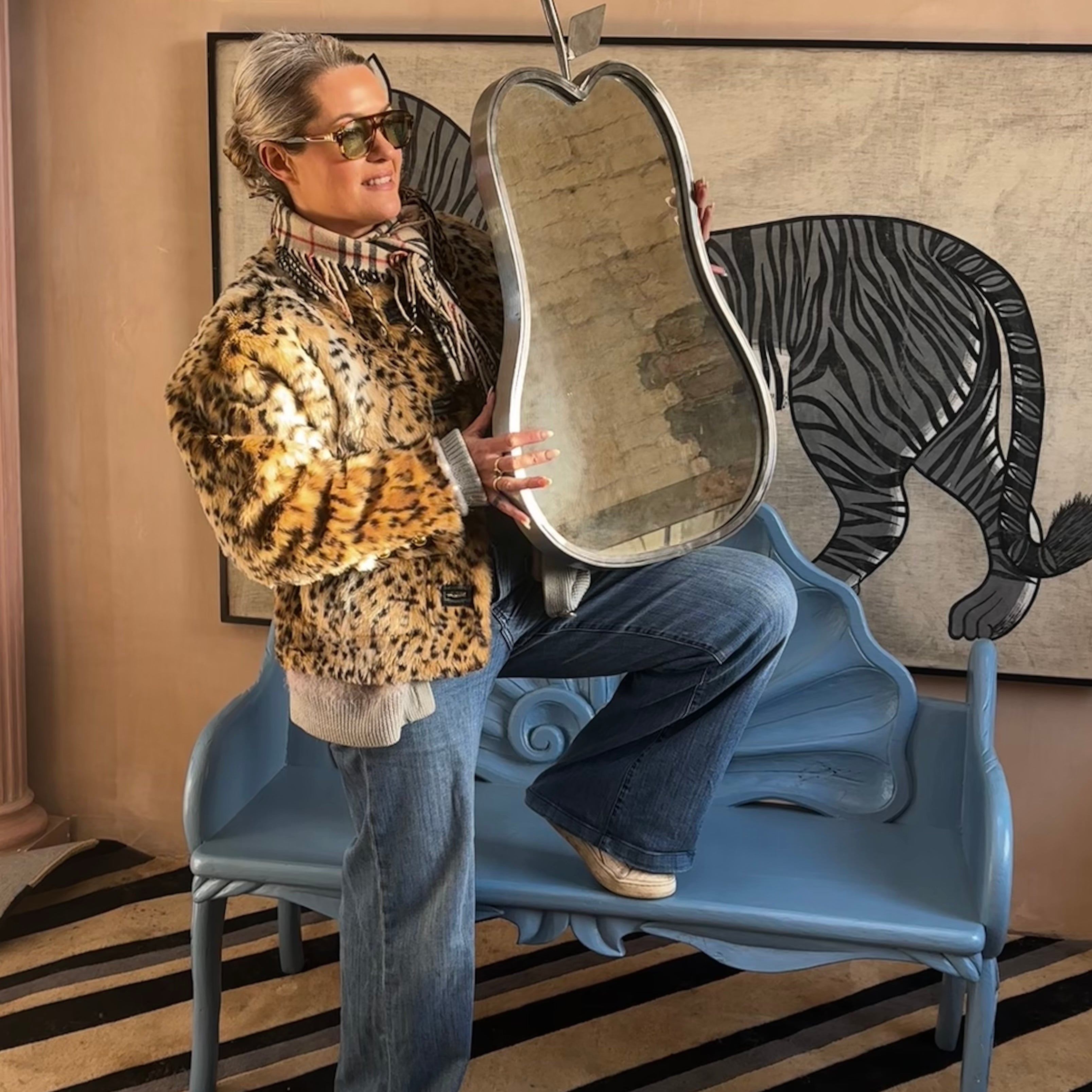 Italian 1970s large leopard lamp