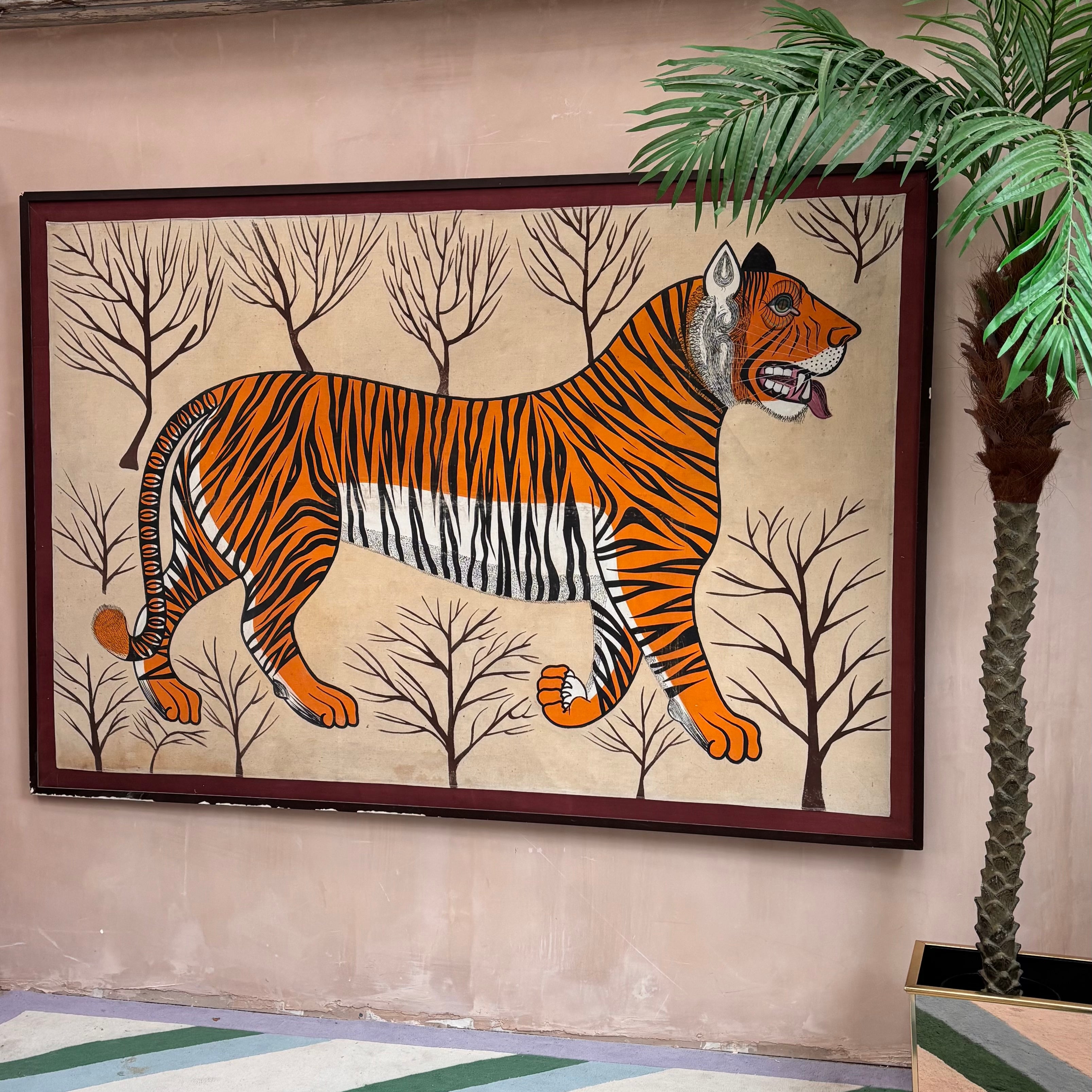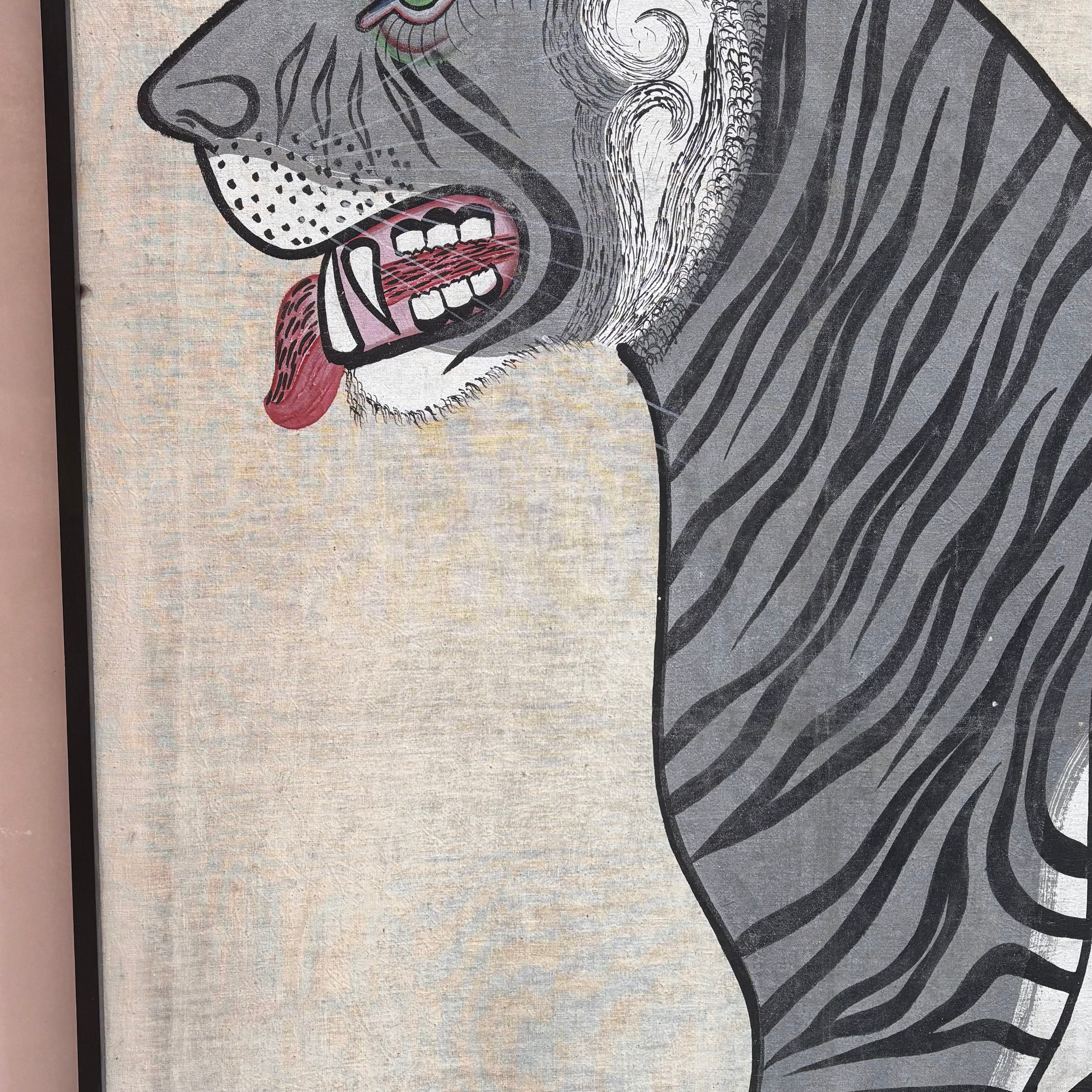 Rare large 1970s framed Tibetan Tiger oil painting on canvas