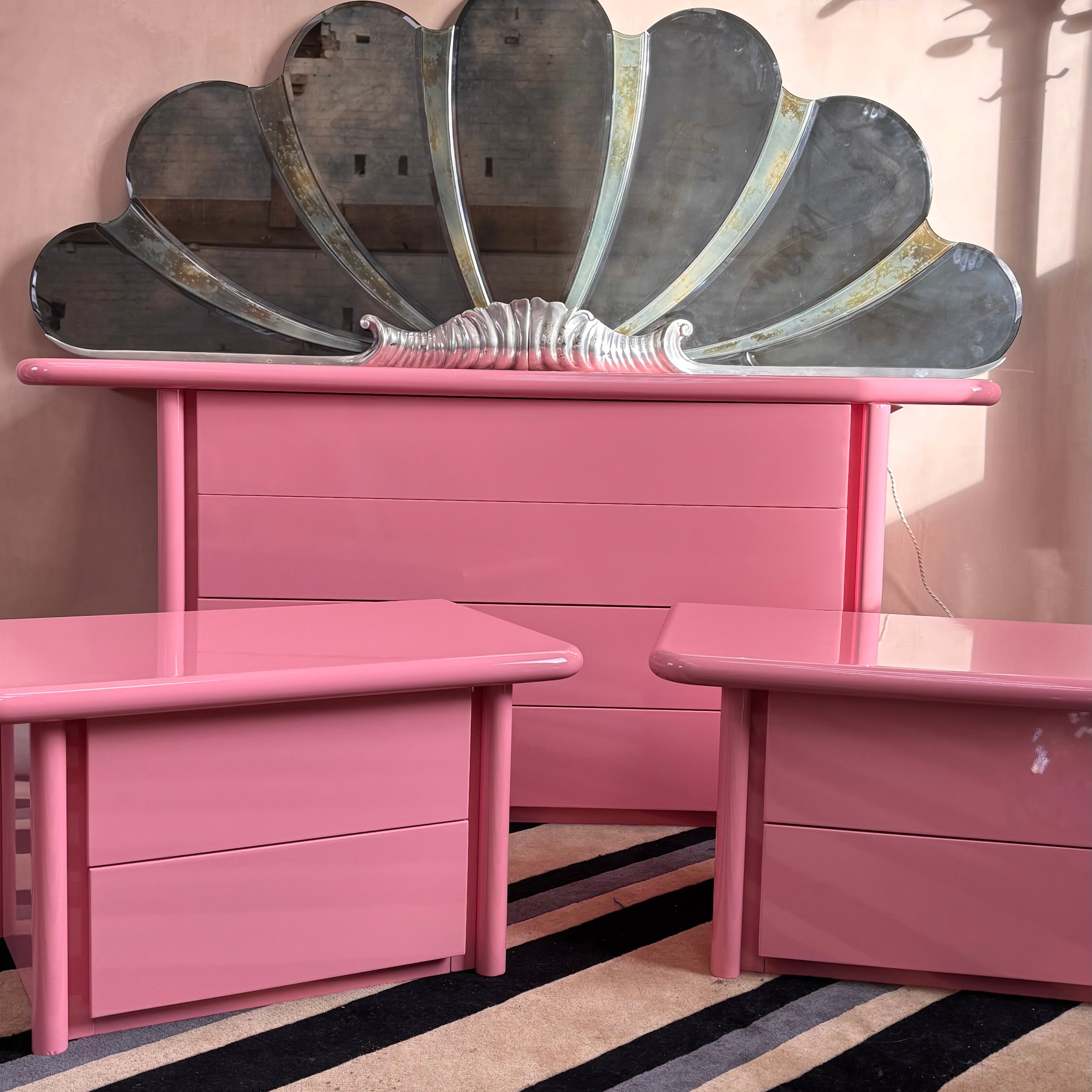 1980s handmade Italian pink bedroom furniture set