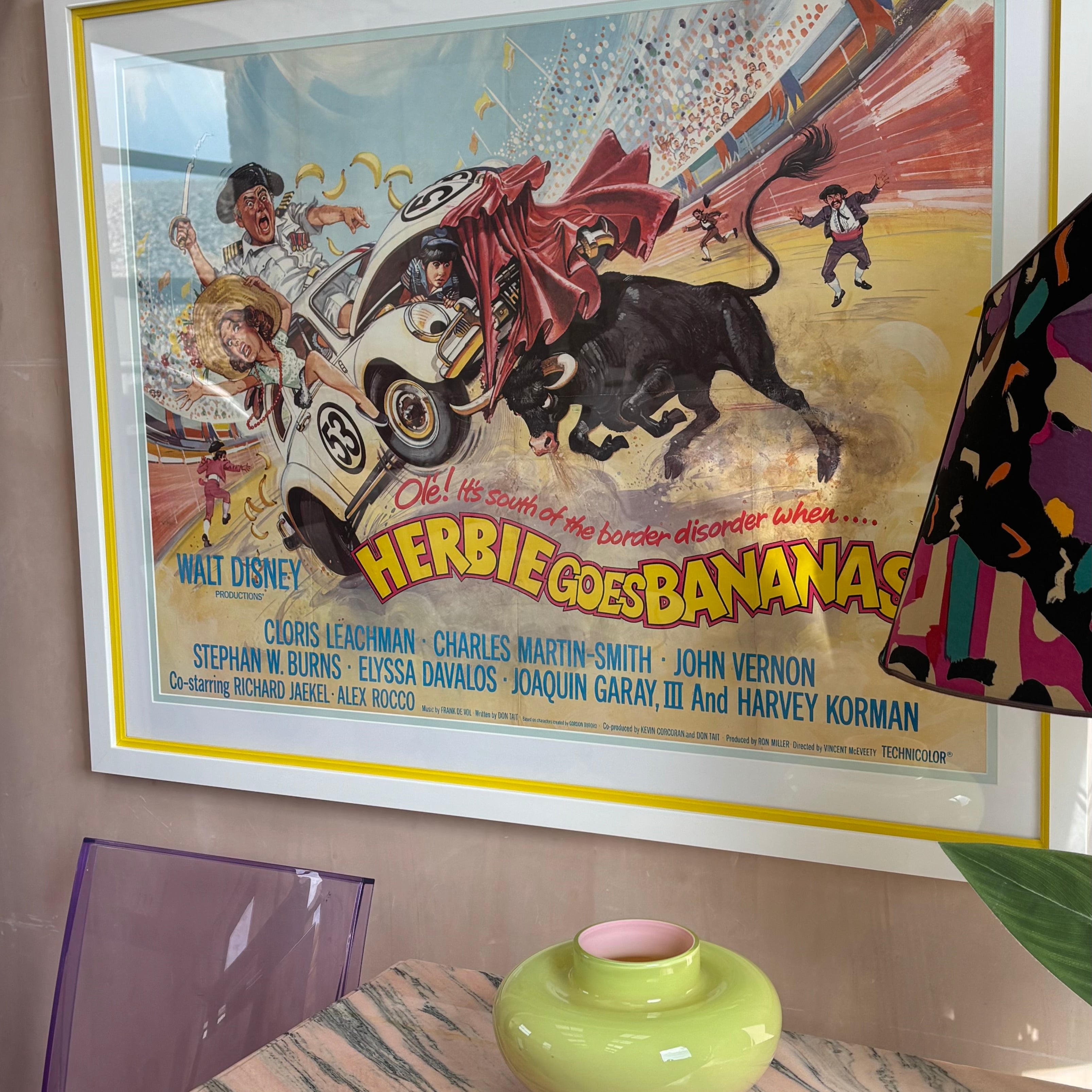 1980s luxury framed ‘Herbie goes bananas’ original movie poster licensed to Walt Disney