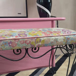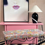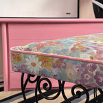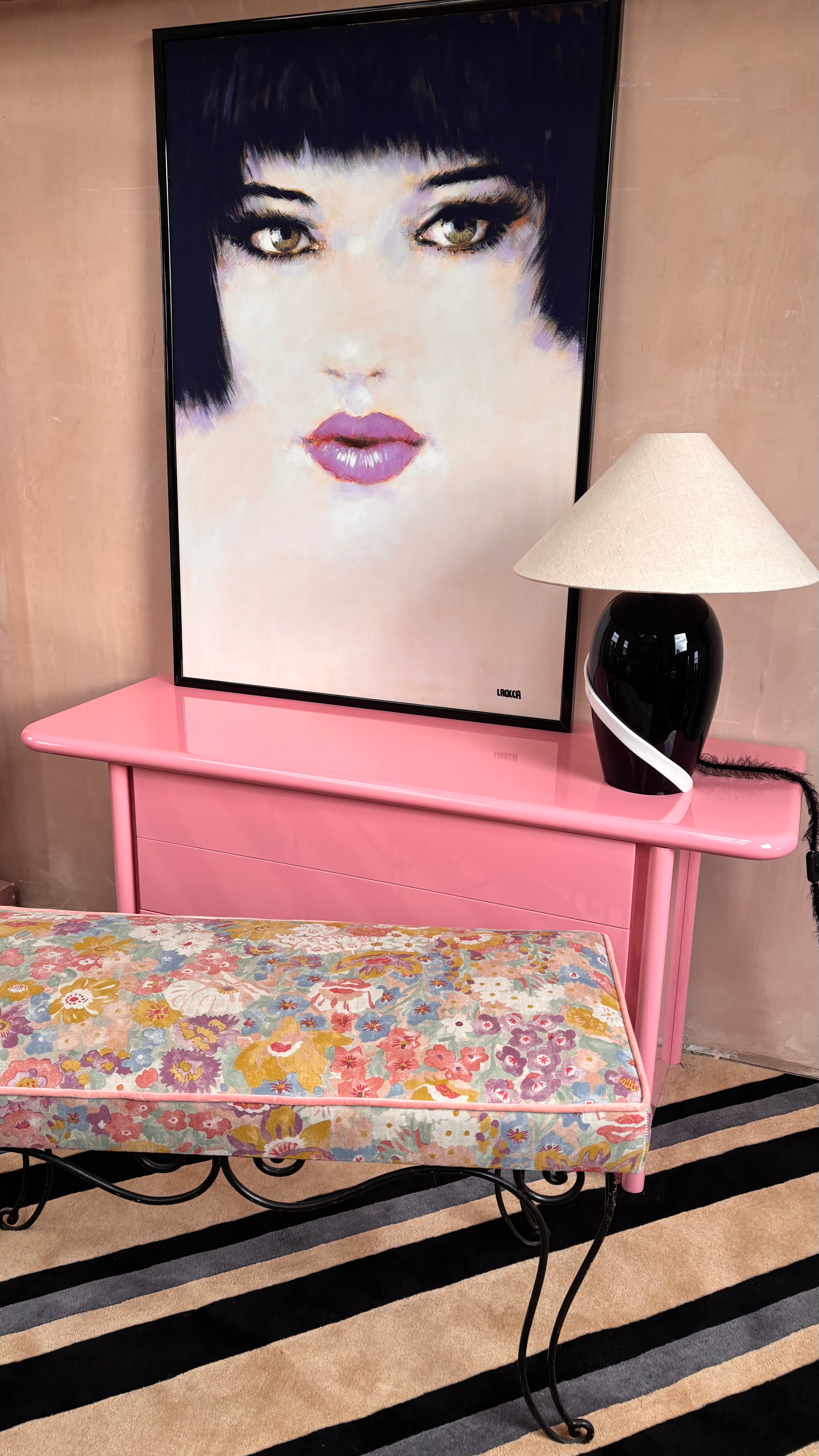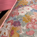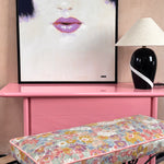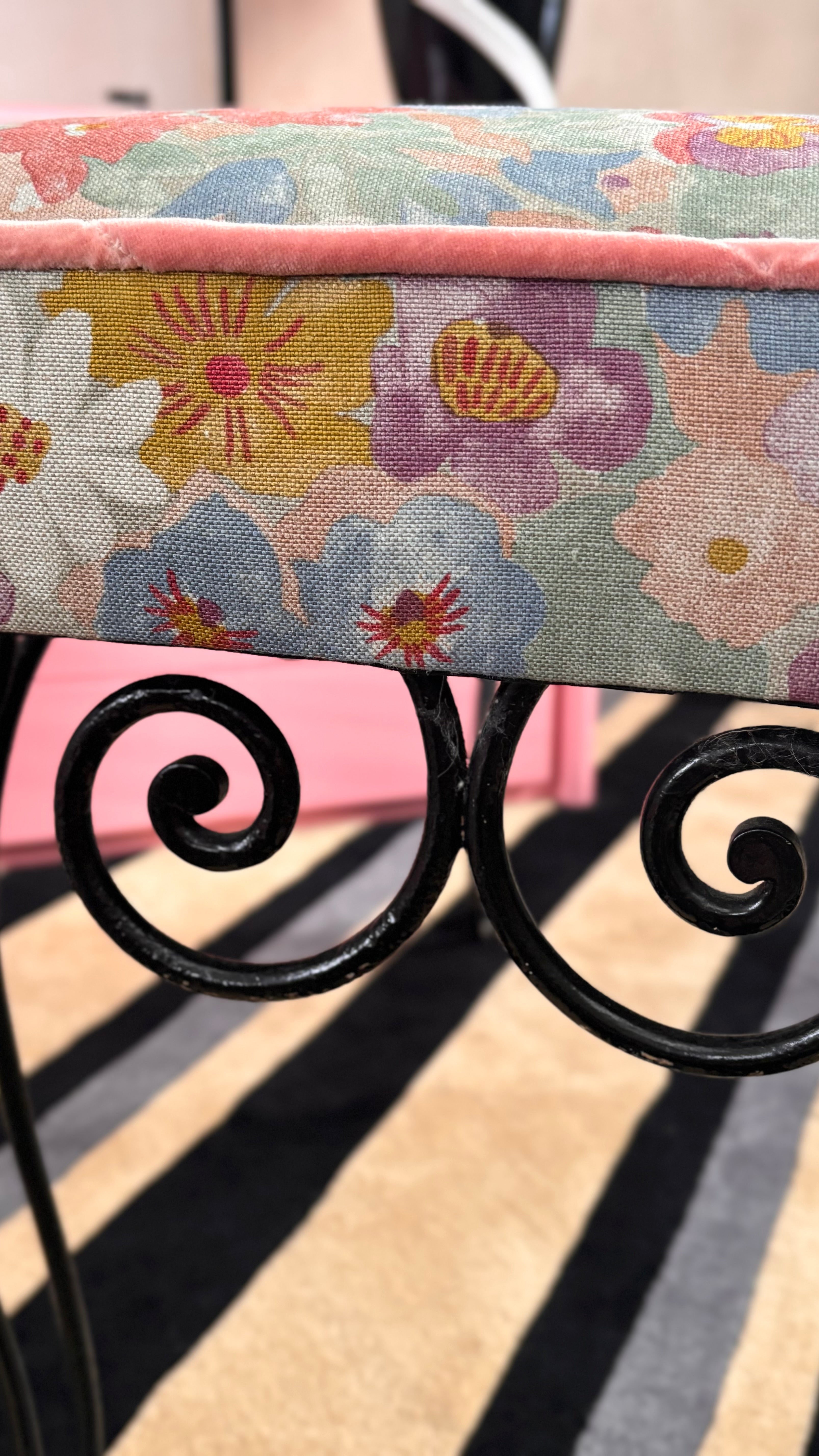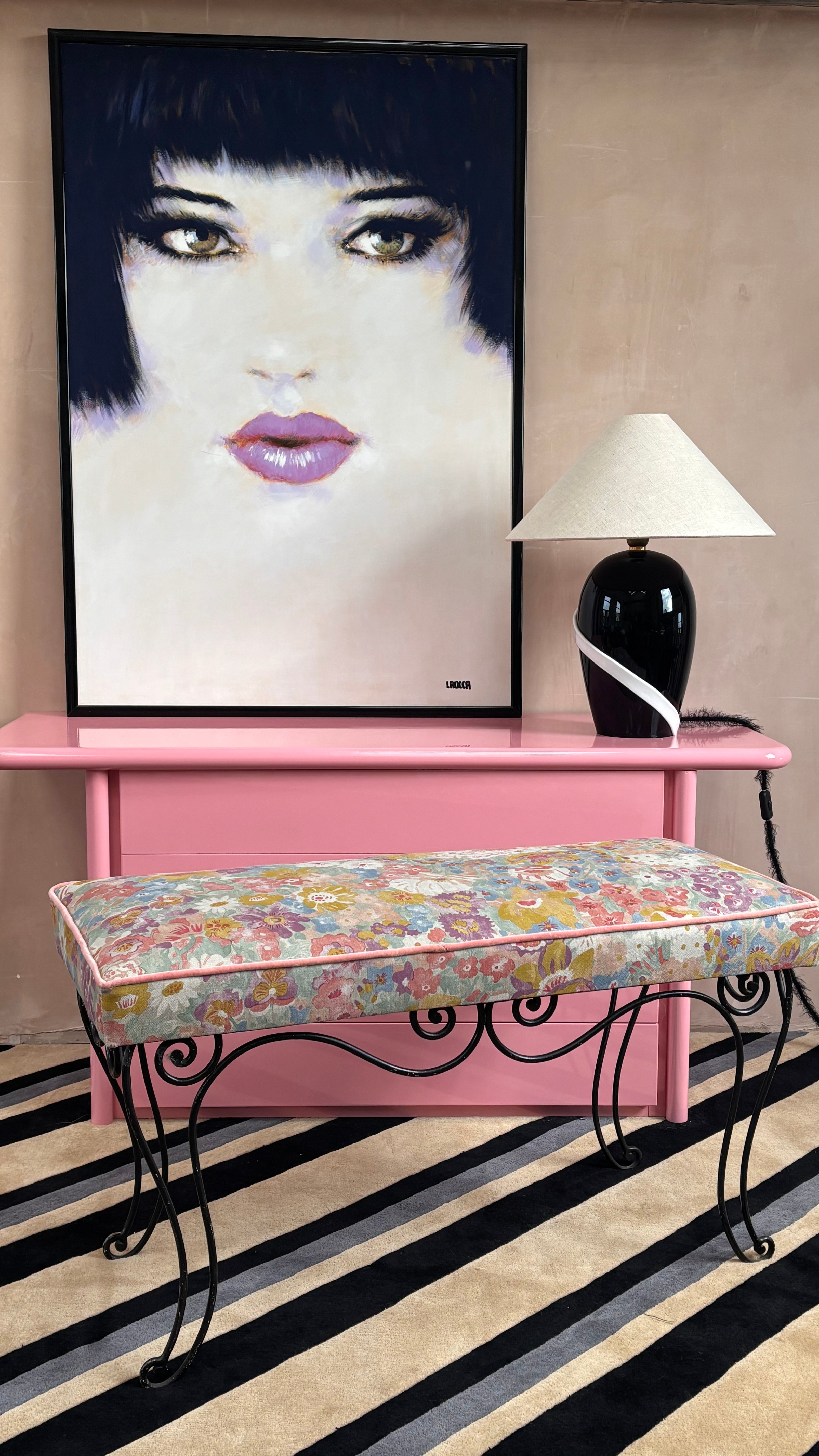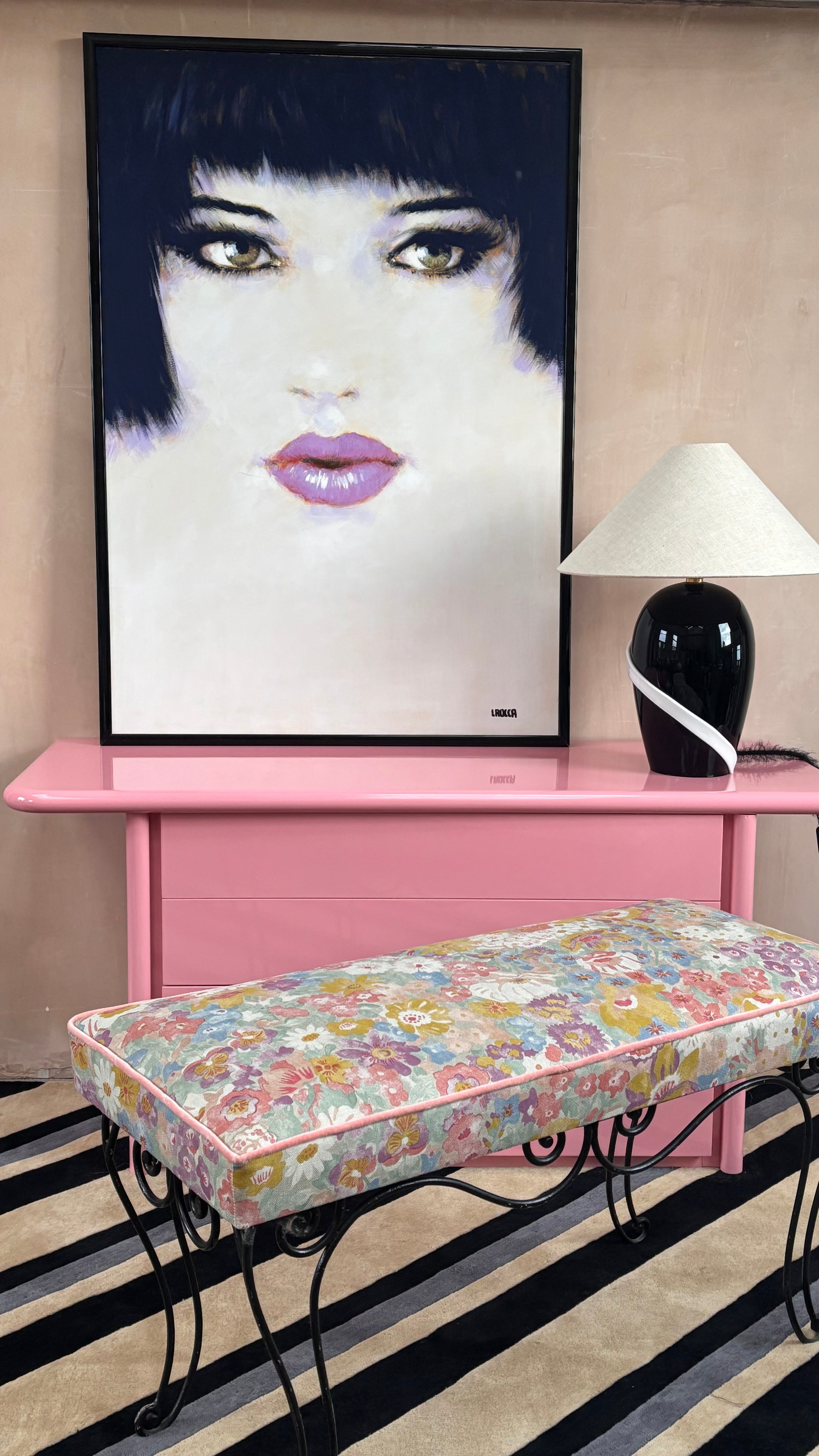 I bought this in Italy. I knew instantly it needed a lovely pastel floral. I chose this heavy linen by Liberty, finished with Pierre Frey sketch pink piping.