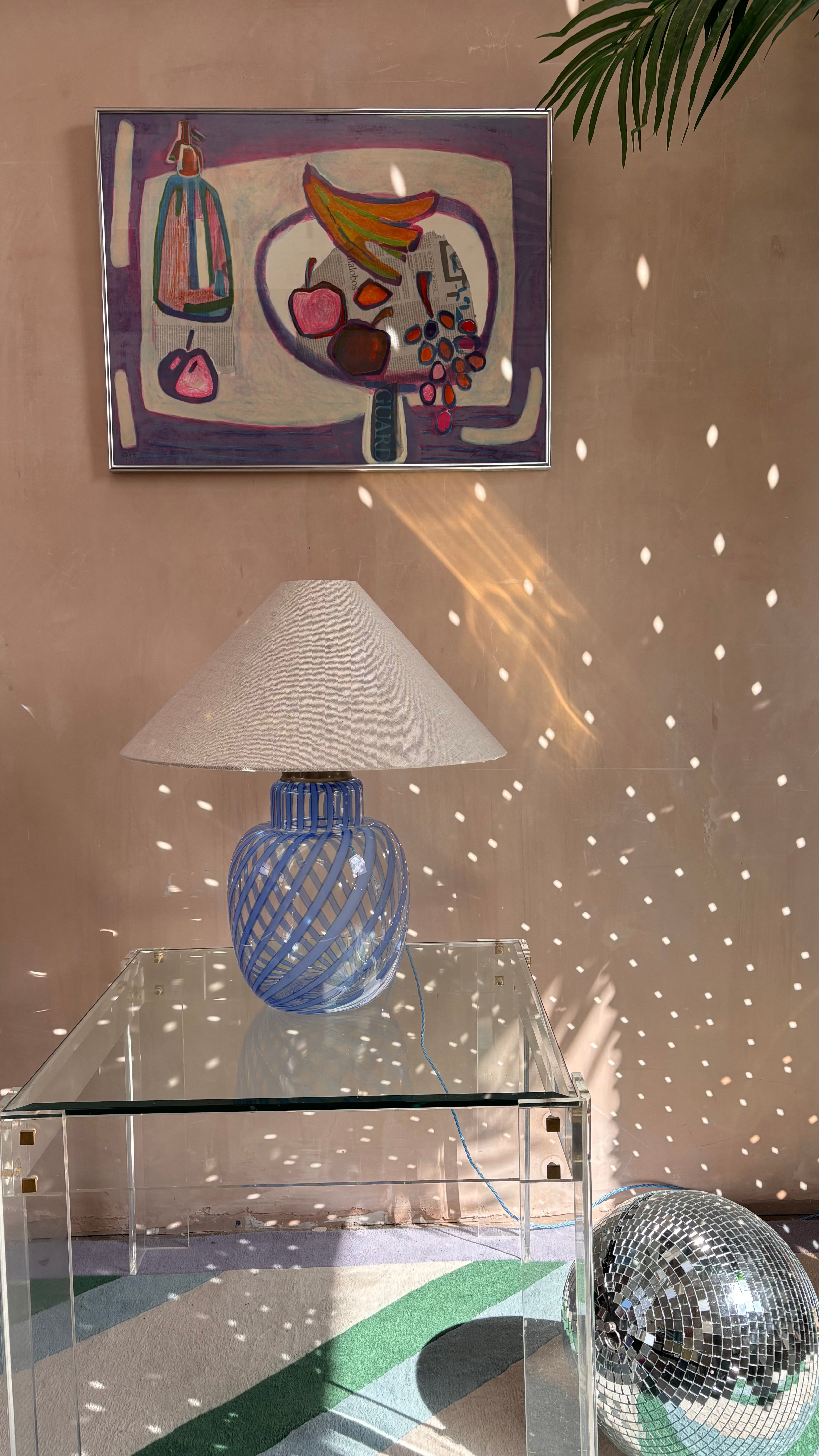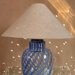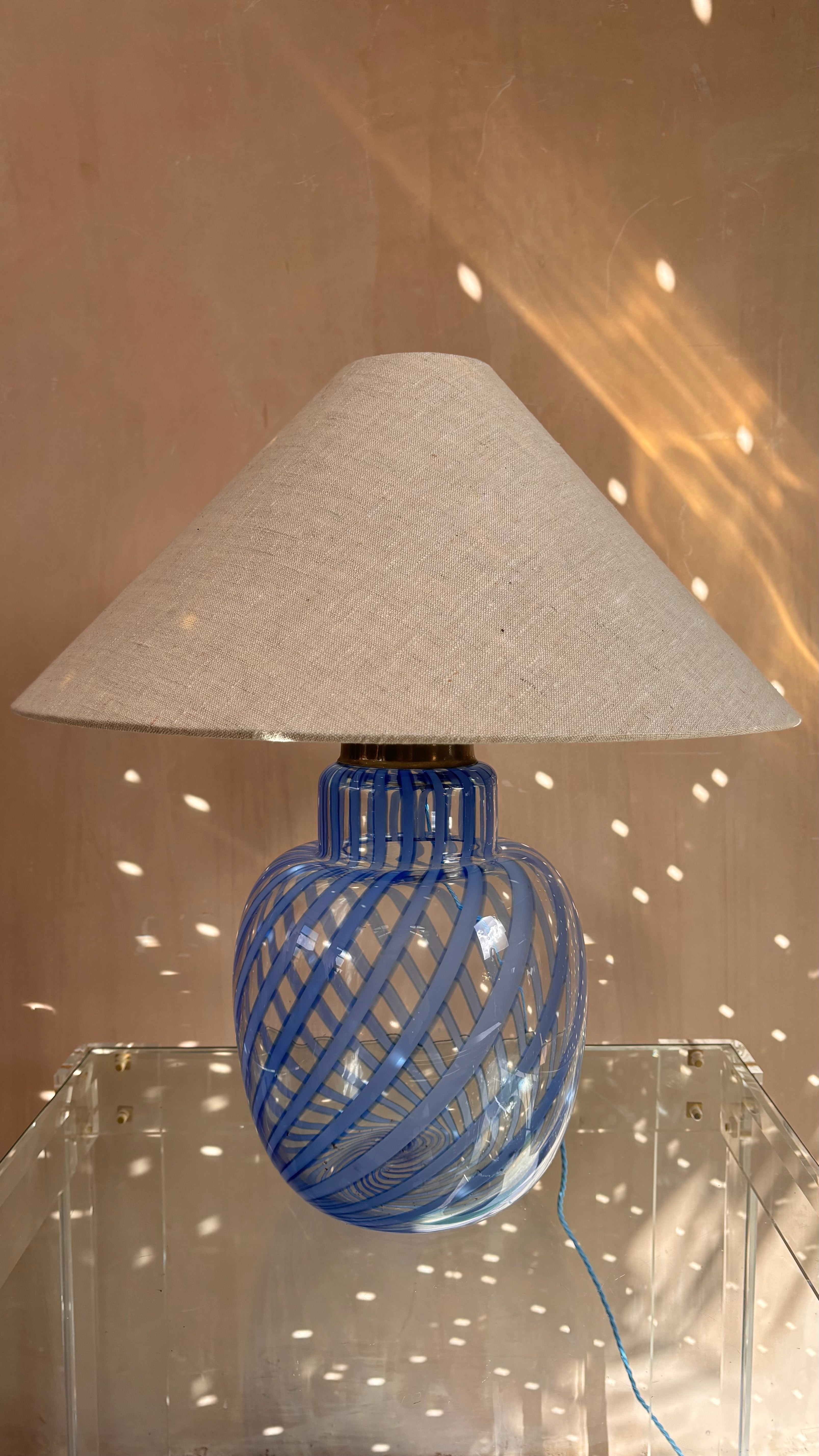 Lovely large chunky murano blue and clear glass swirl/ stripe table lamp by Venini. Luxury glass artists in Murano, Venice.