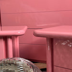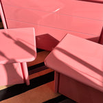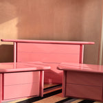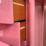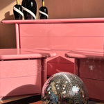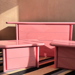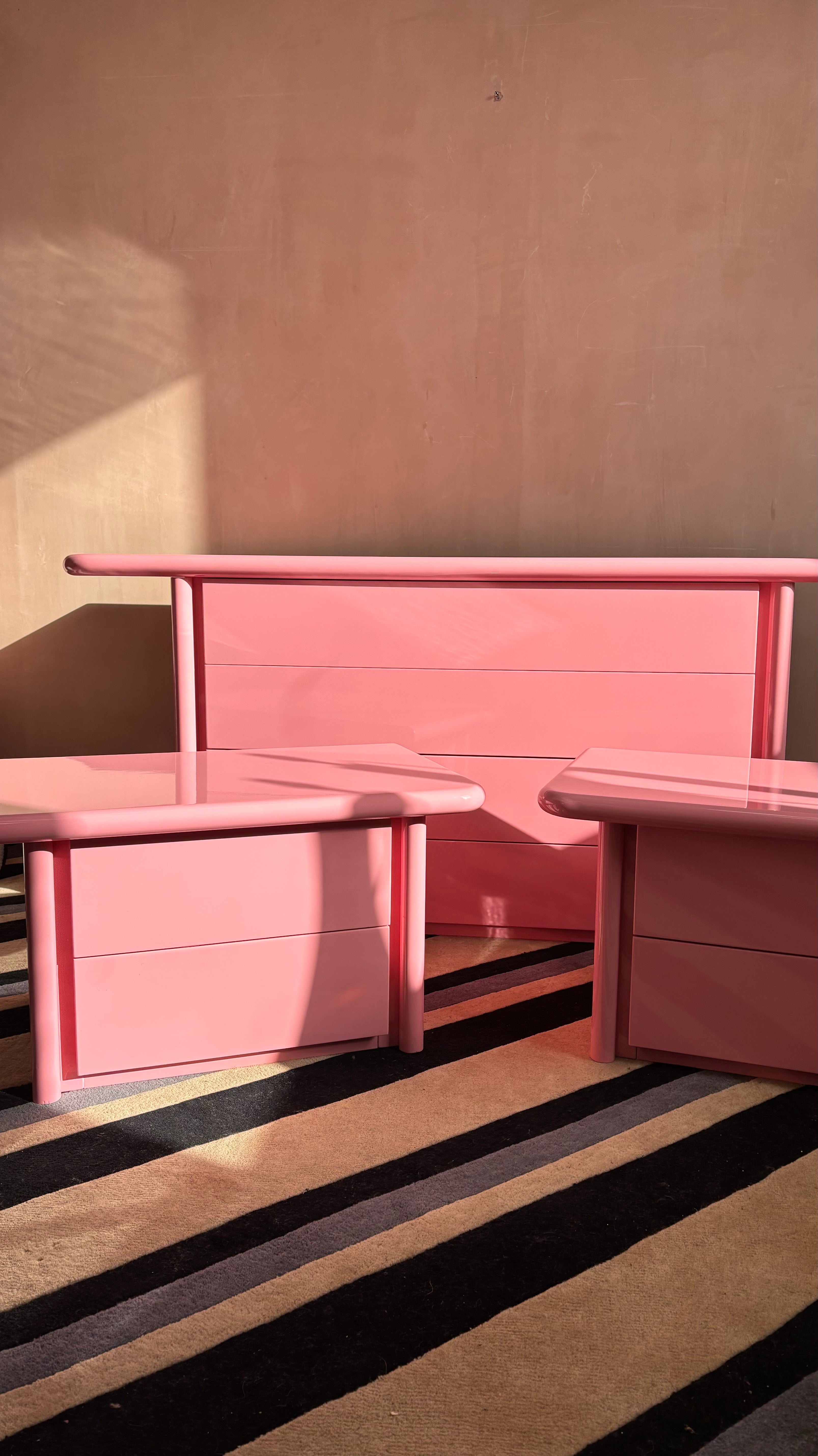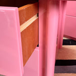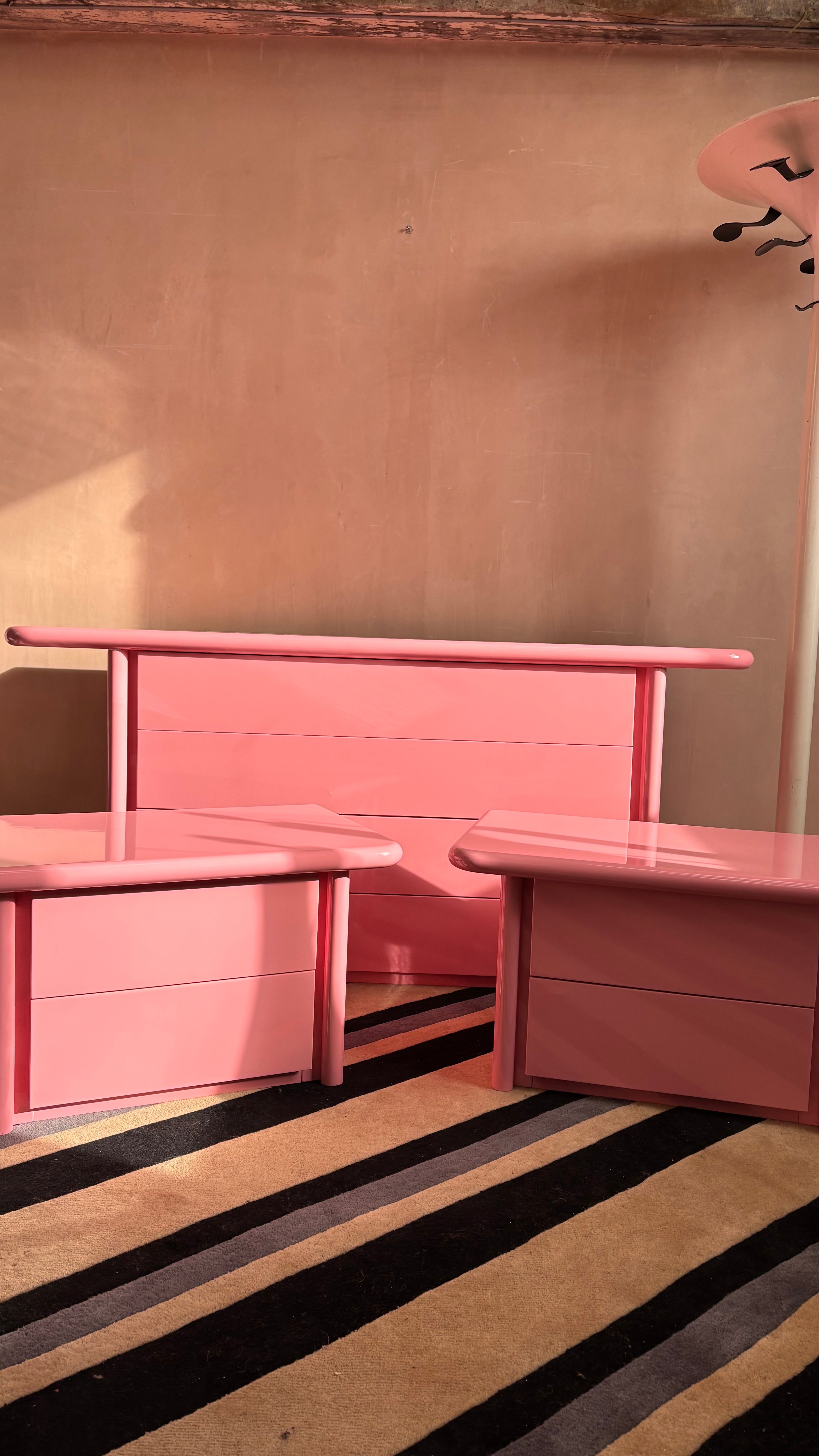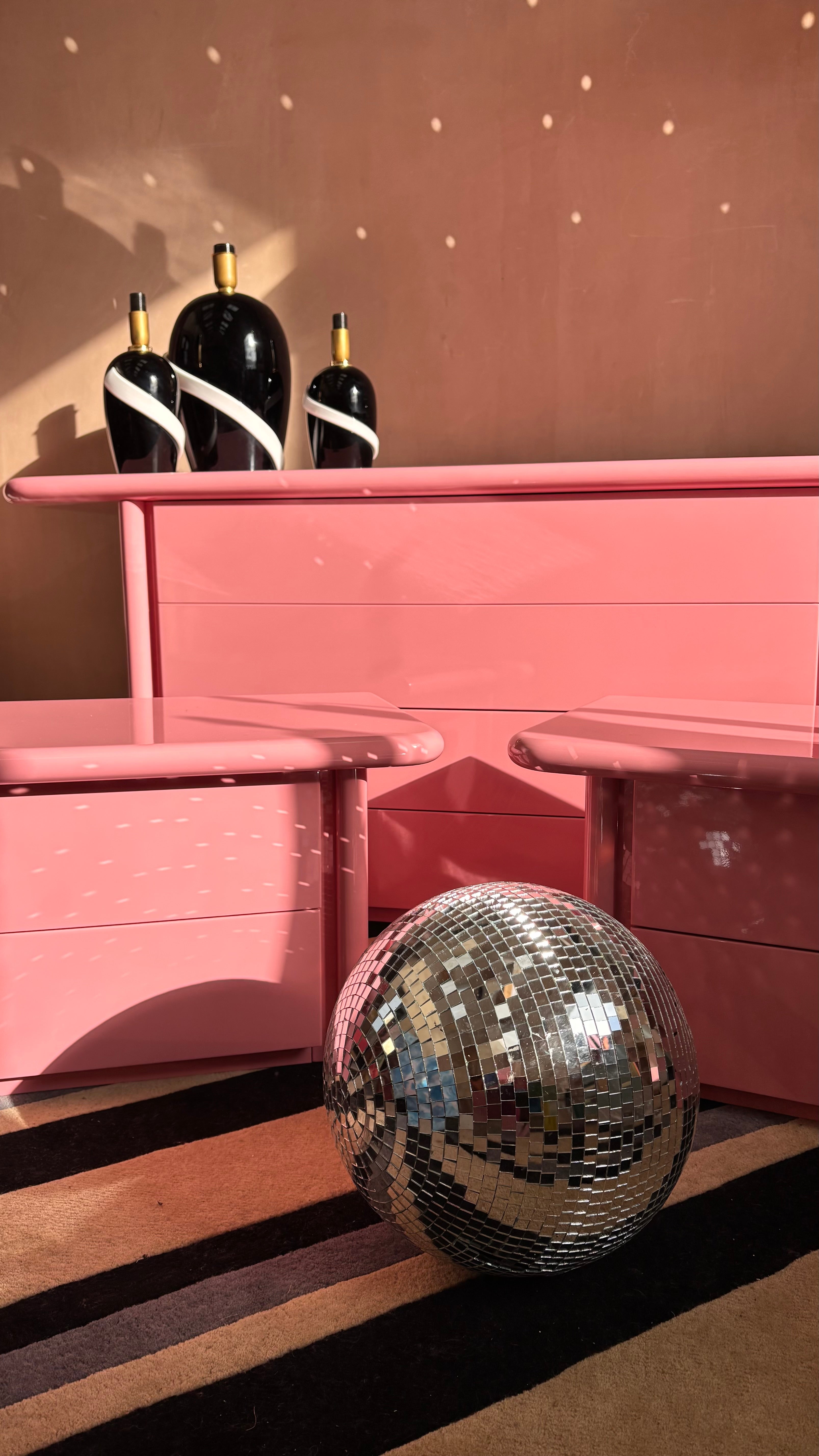 Outstanding 1980s handmade, signed Italian pink bedroom furniture set. Consists of large chest of drawers and two matching side drawers.