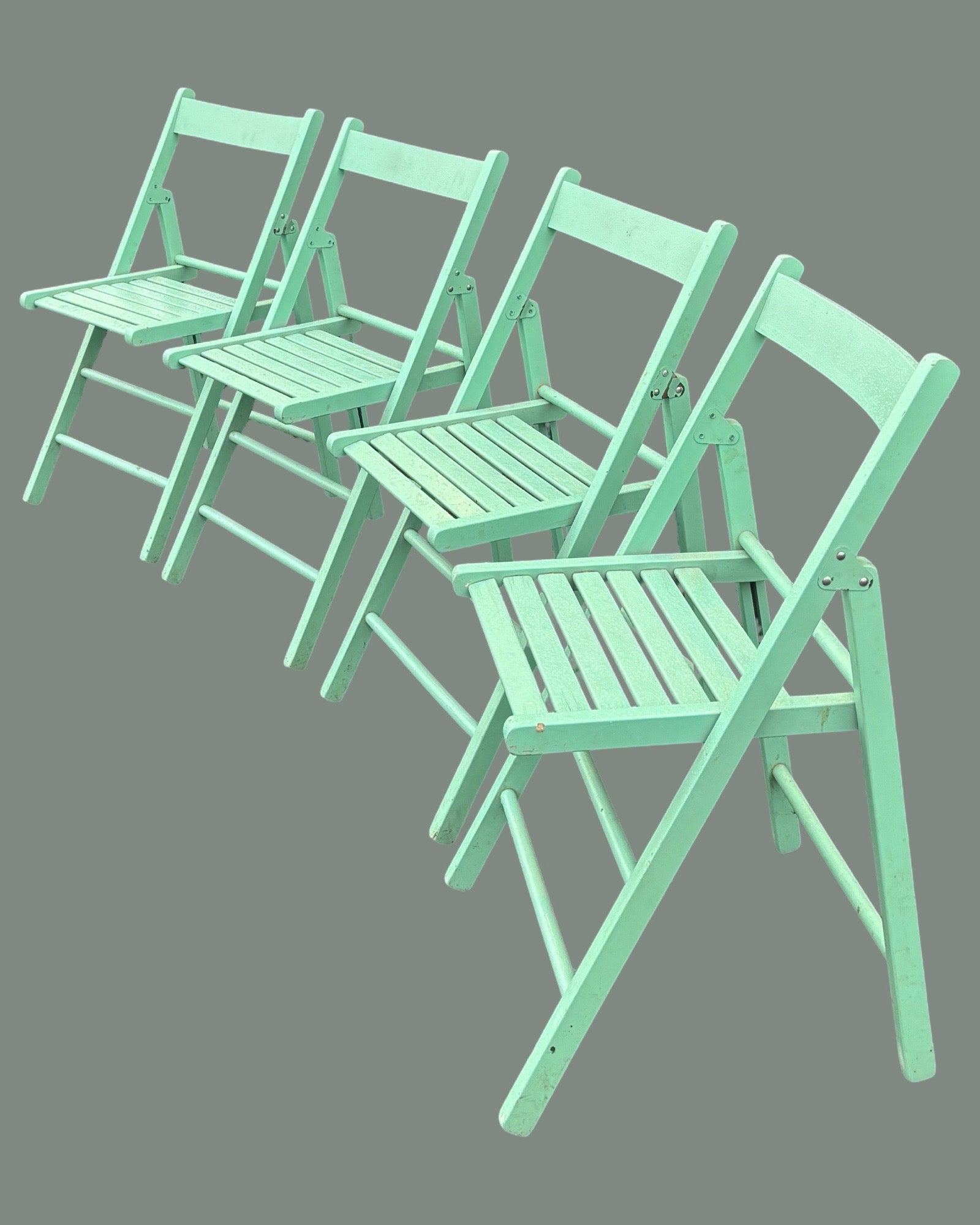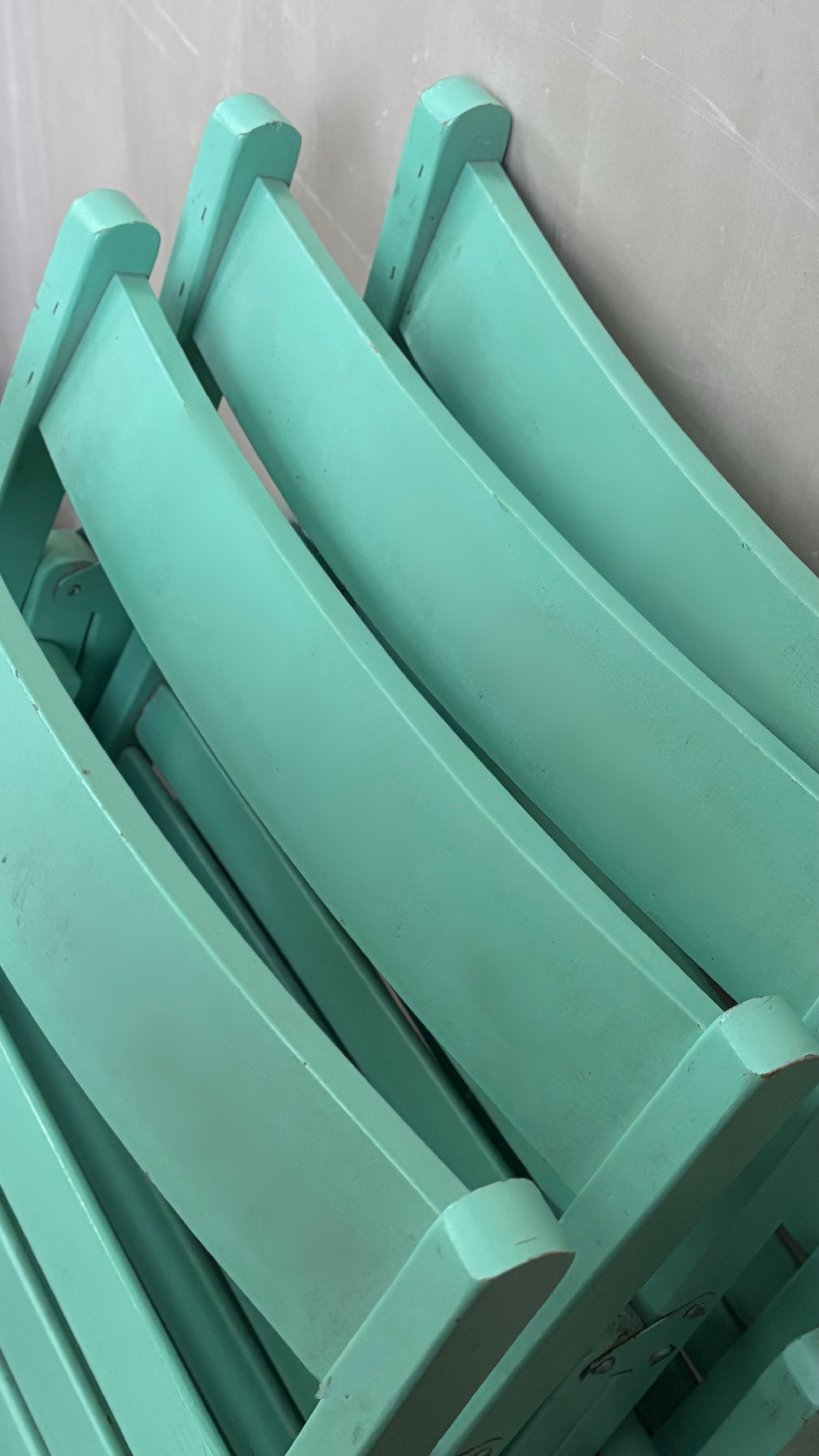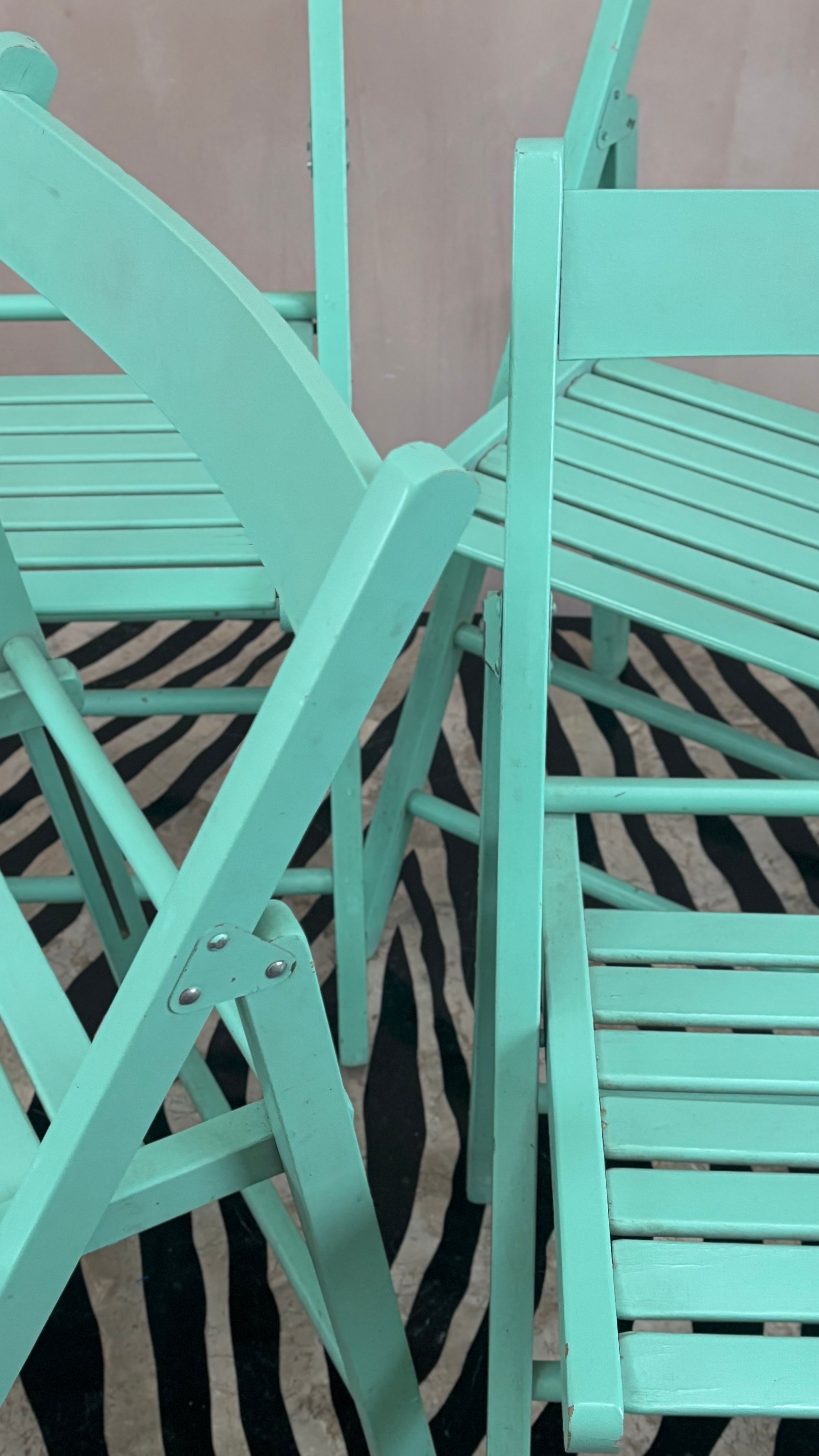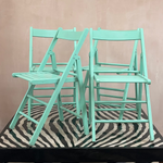 1980s Italian set of four mint green wood folding chairs
