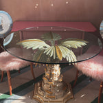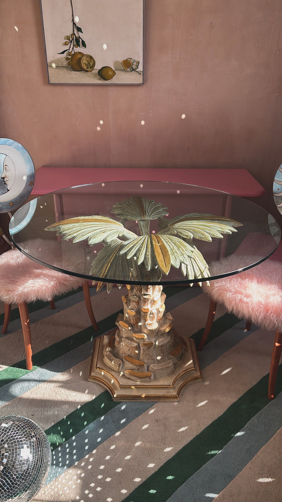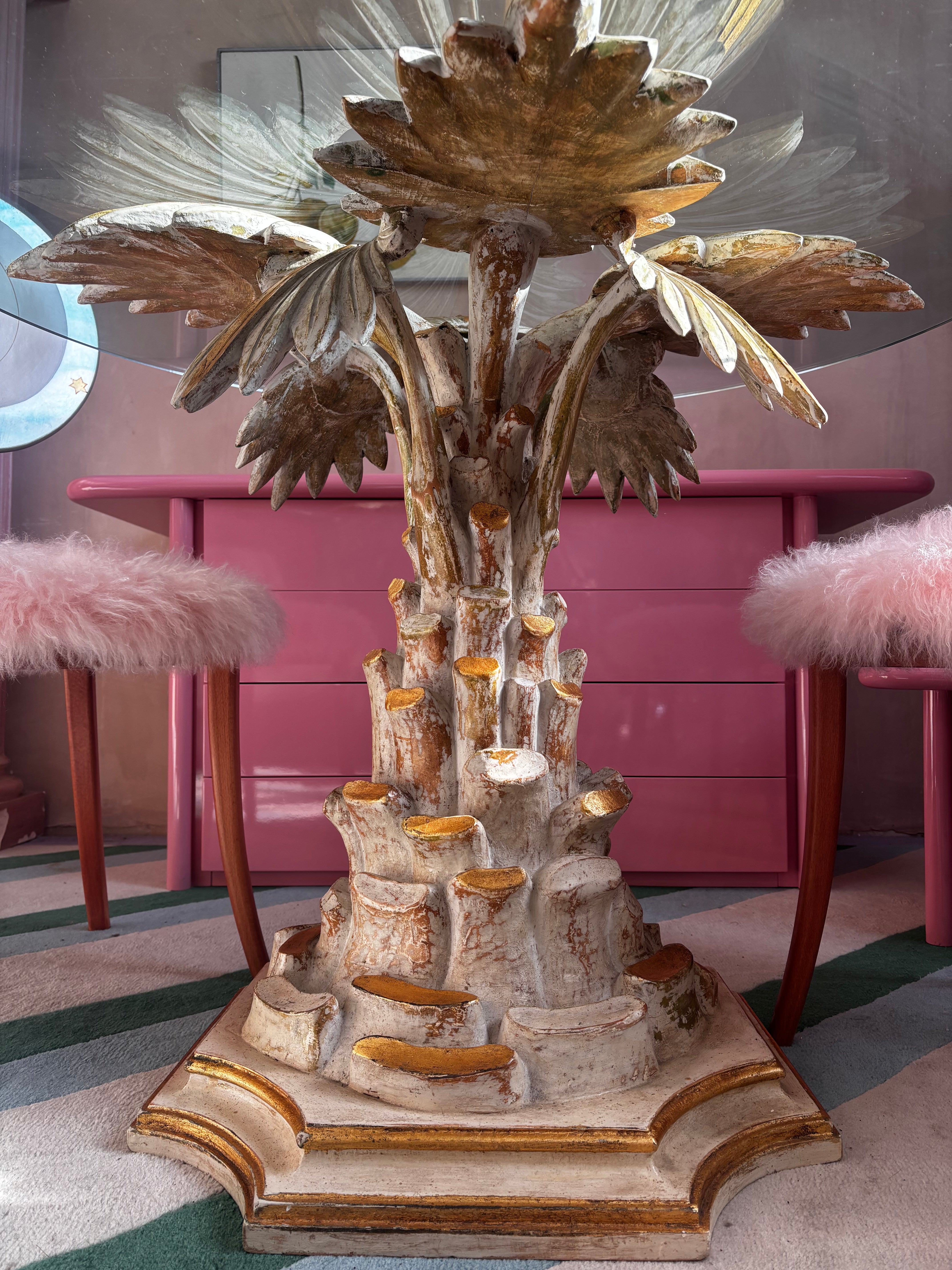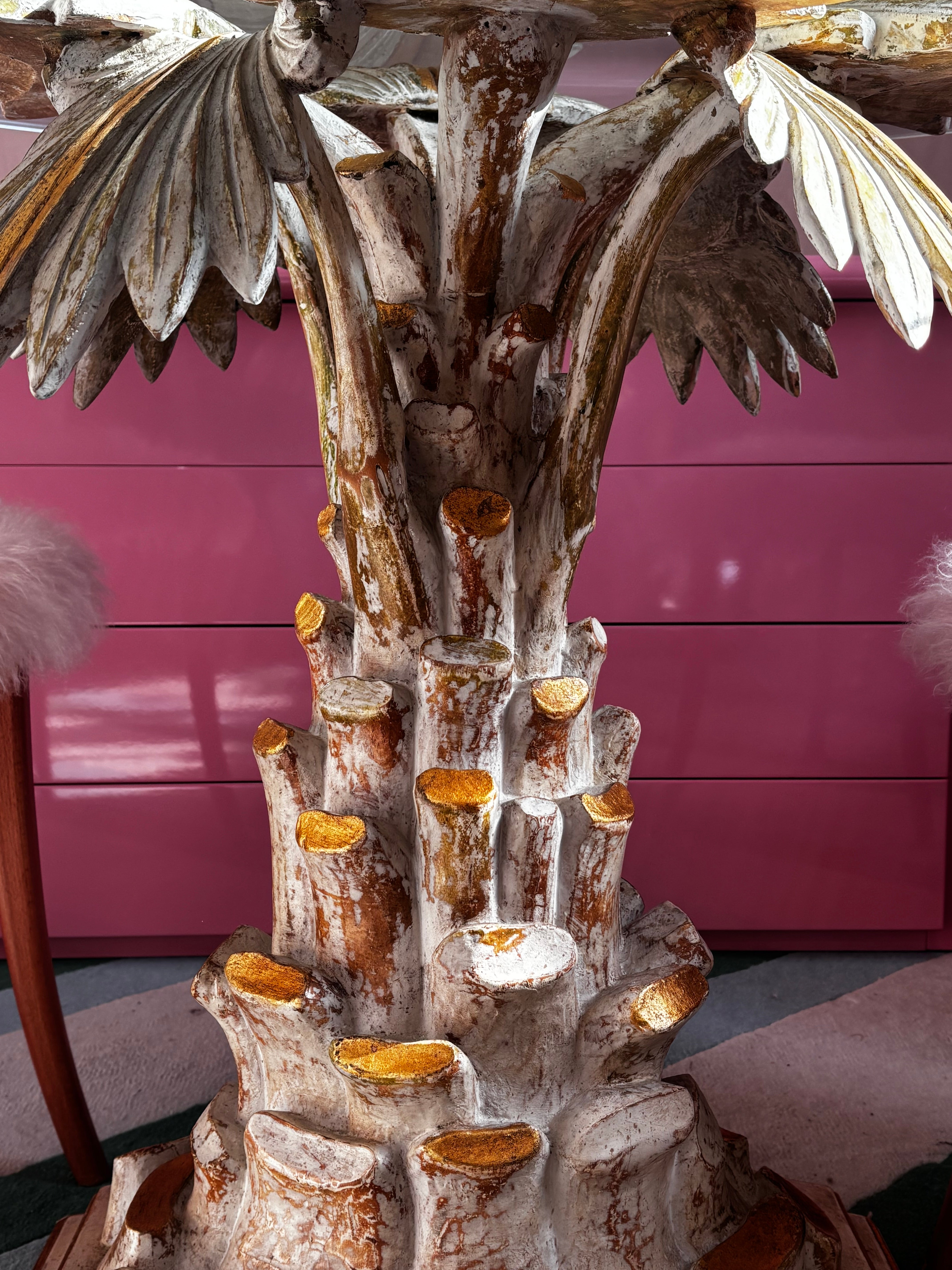 This exquisite carved table features a sculptural palm design that showcases an extraordinary level of craftsmanship.
