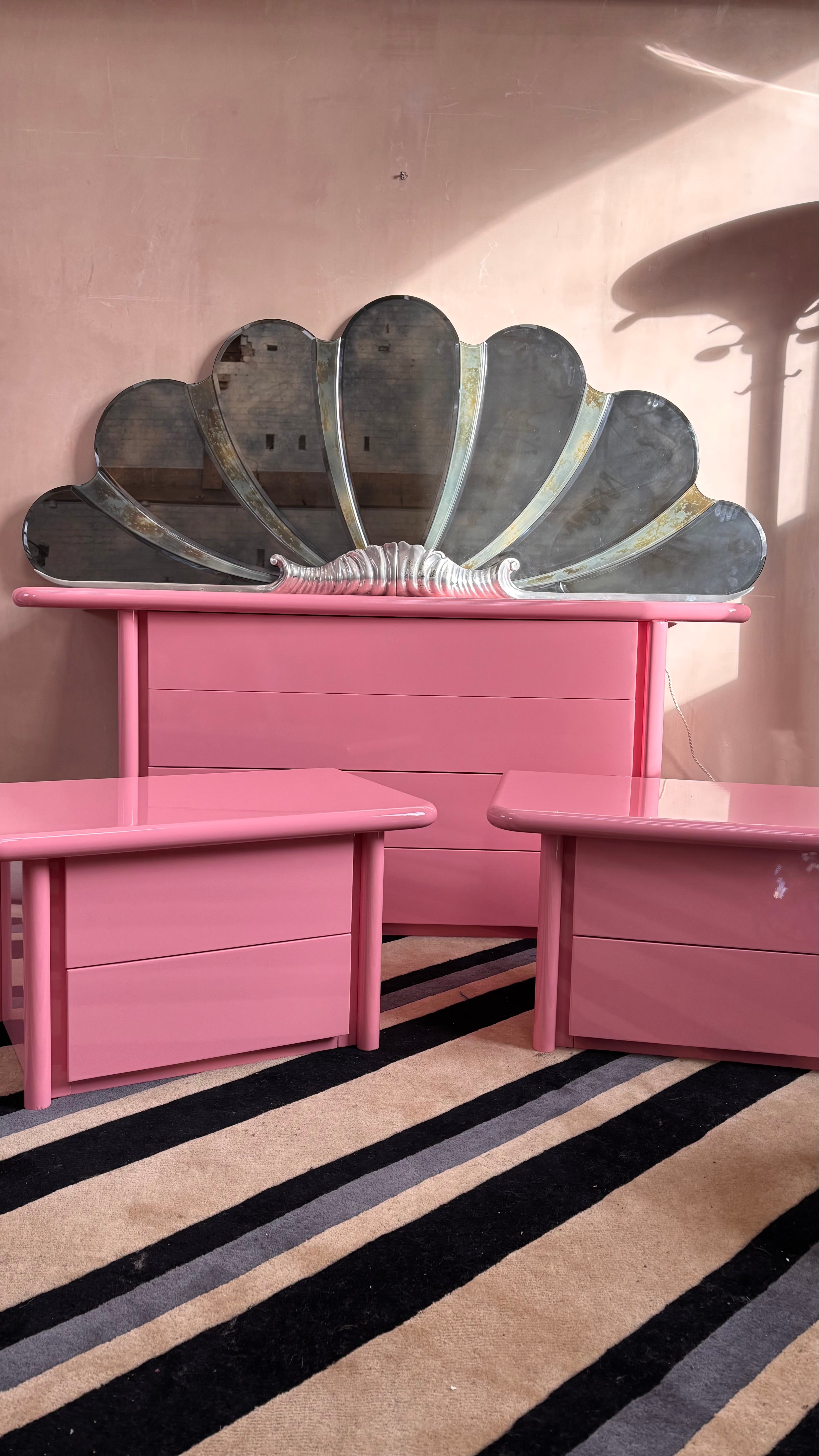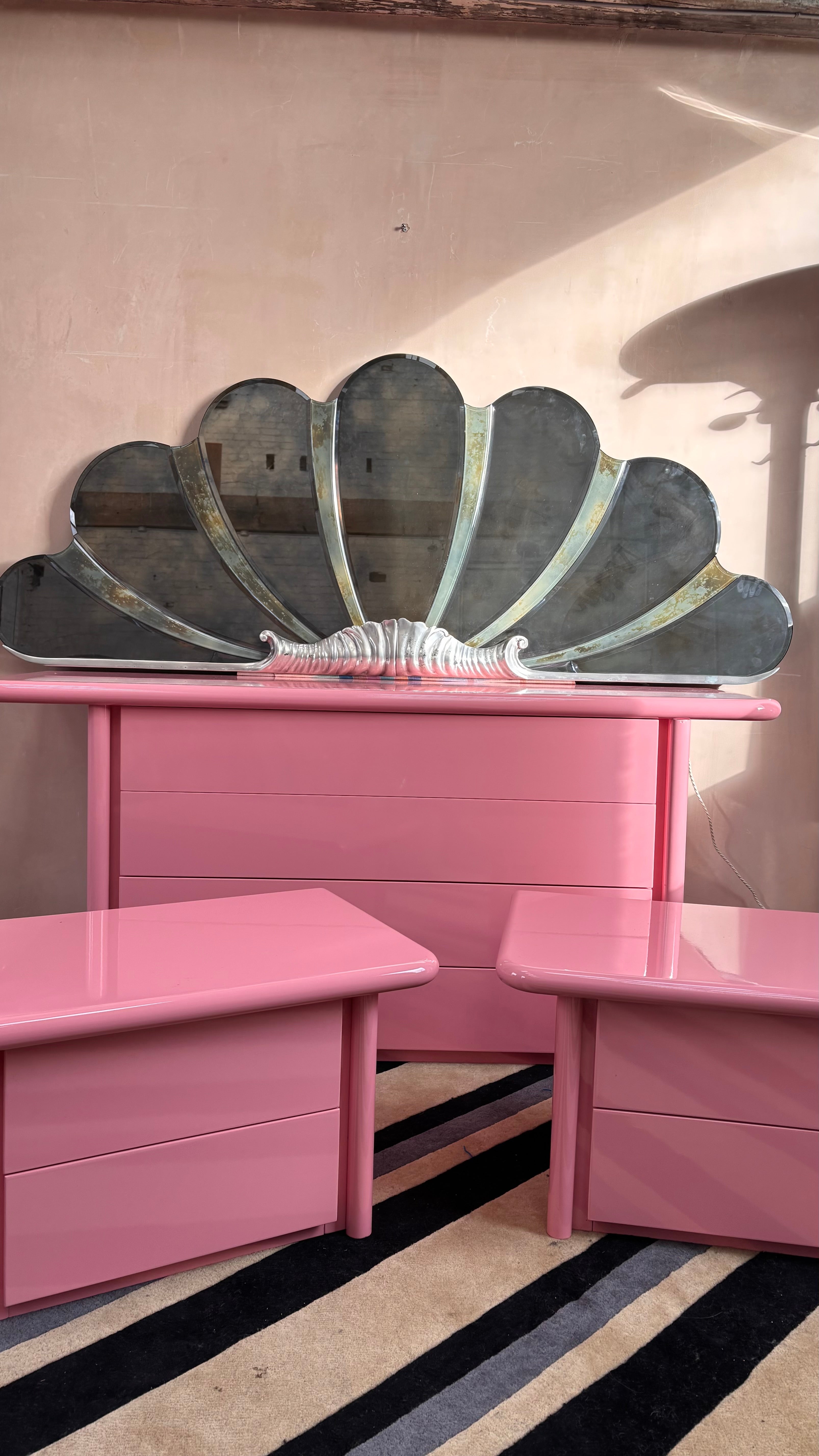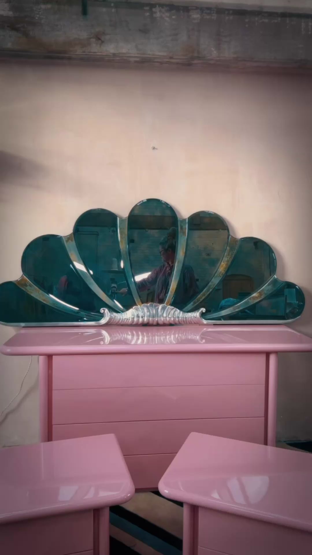 Italian 1980s large shell light up mirror