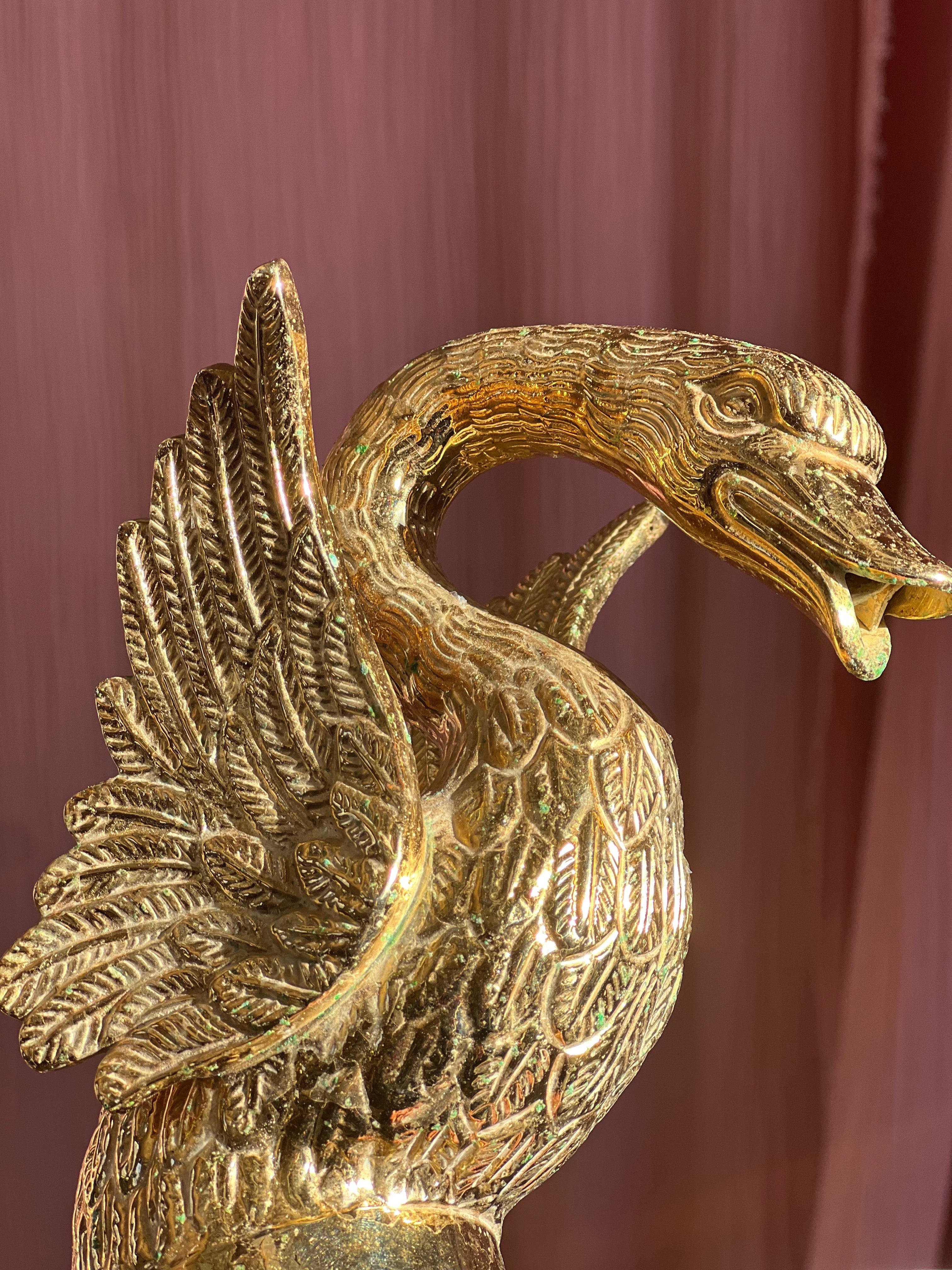 Beautiful Italian 1970s gold plated swan basin tap, one set includes central swan water extractor and two gold plated tap mixers for hot and cold water, left and right. Comes with all attachments for plumbing.