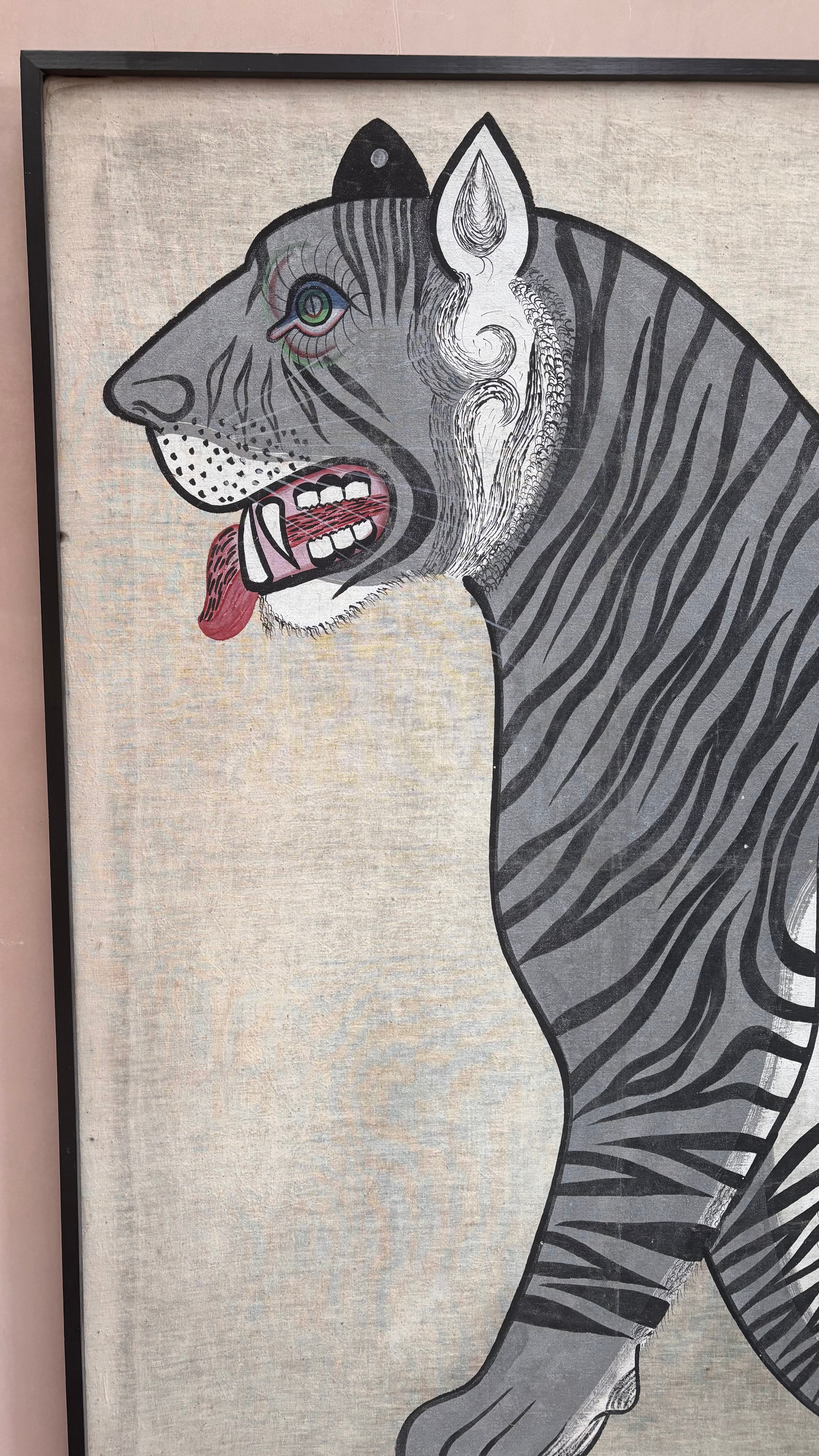 Rare 1970s large framed Tibetan tiger painting. Hard to find in monochrome very often full of colour. In great vintage condition.