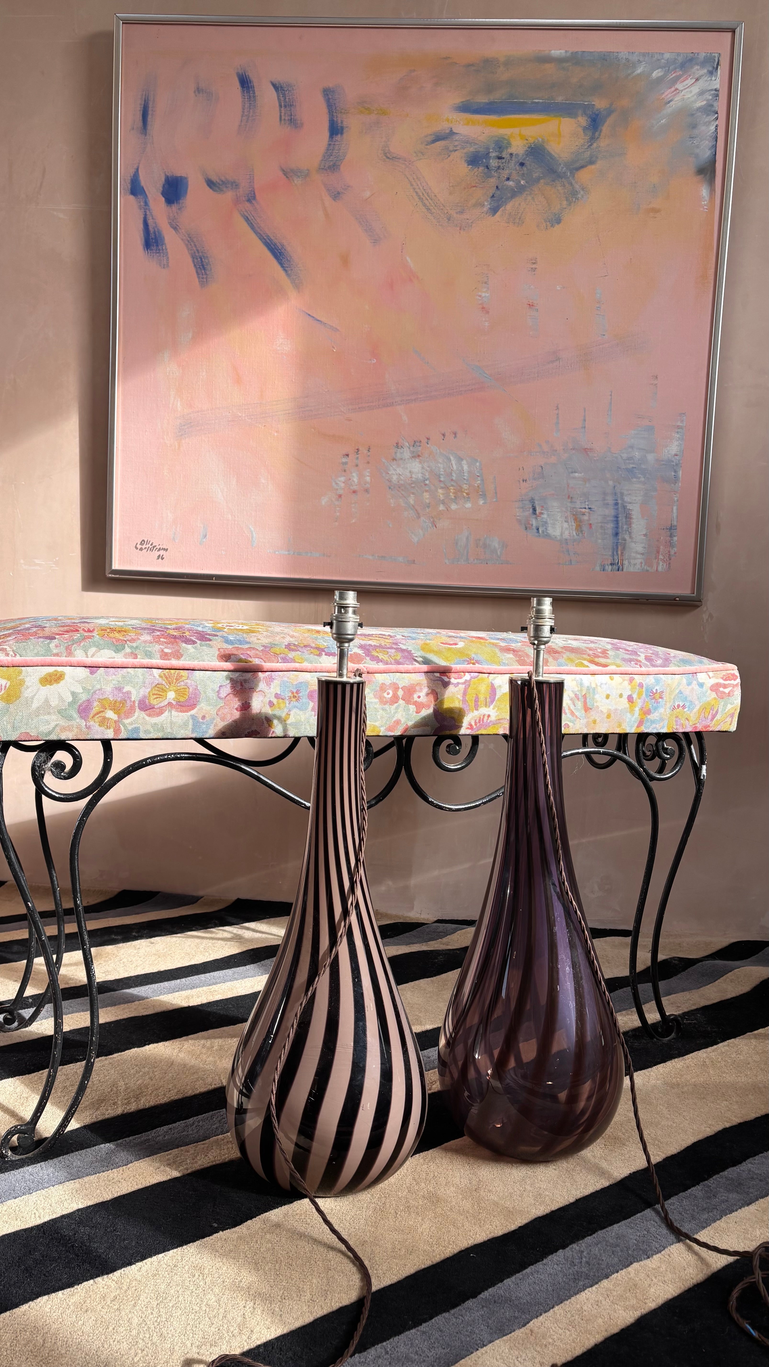 Beautiful 1970s deep plum swirl Murano lamp signed to the base Seguso. We have two of these lamps but they do not exactly match in colour therefore separate listings but they are the same height.
