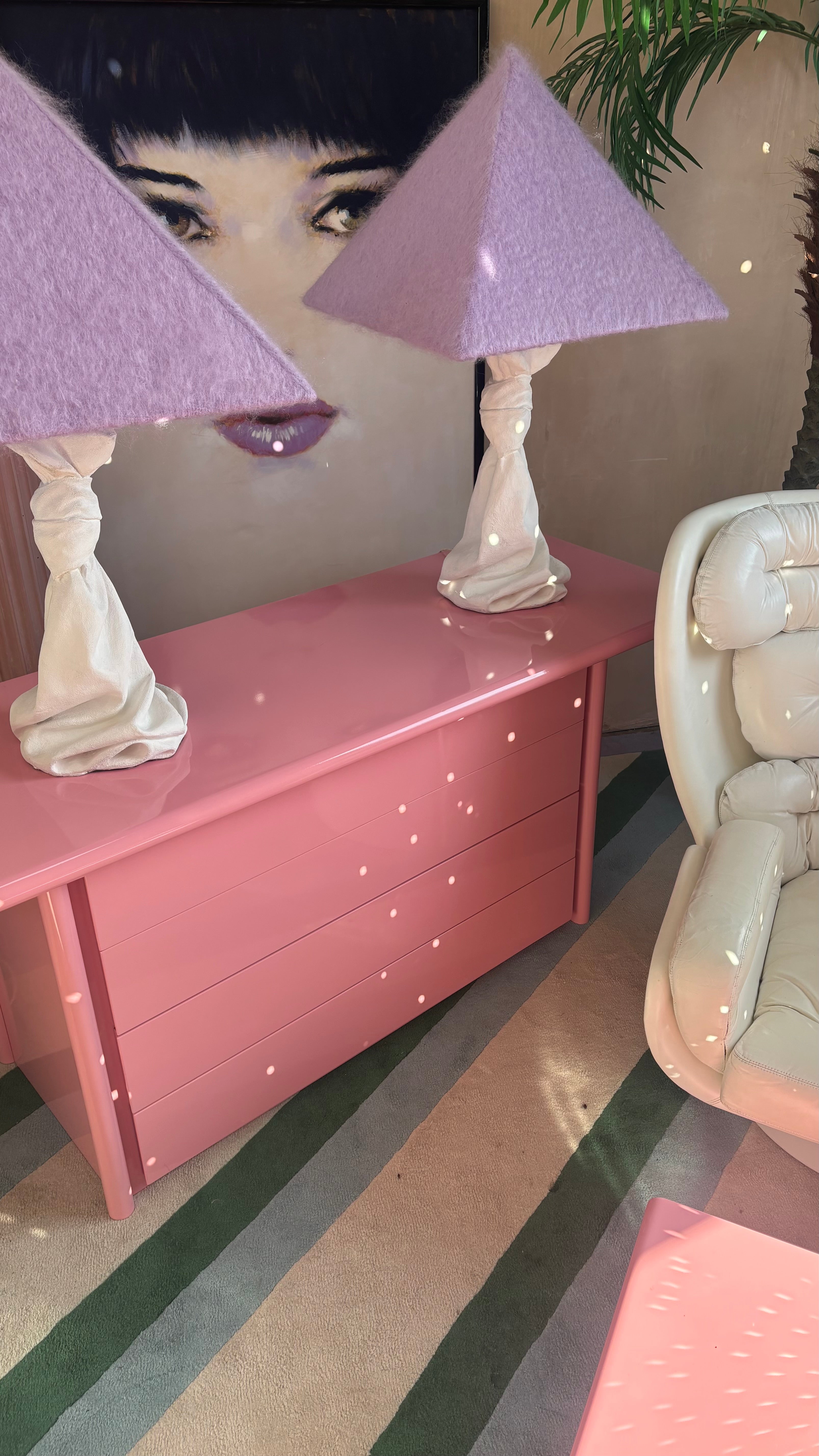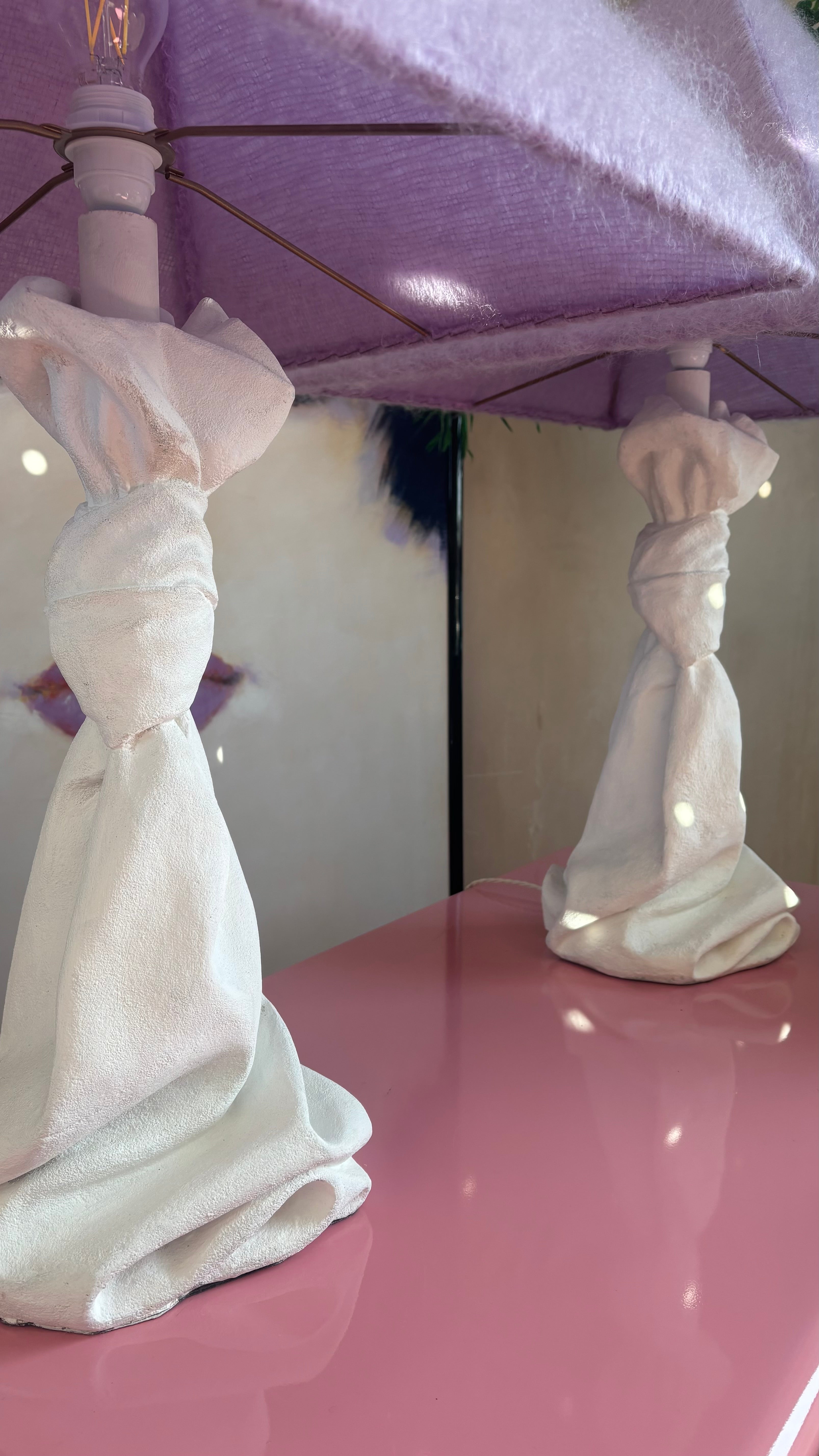 Rare pair of 1970s John Dickinson drape, knotted table lamps