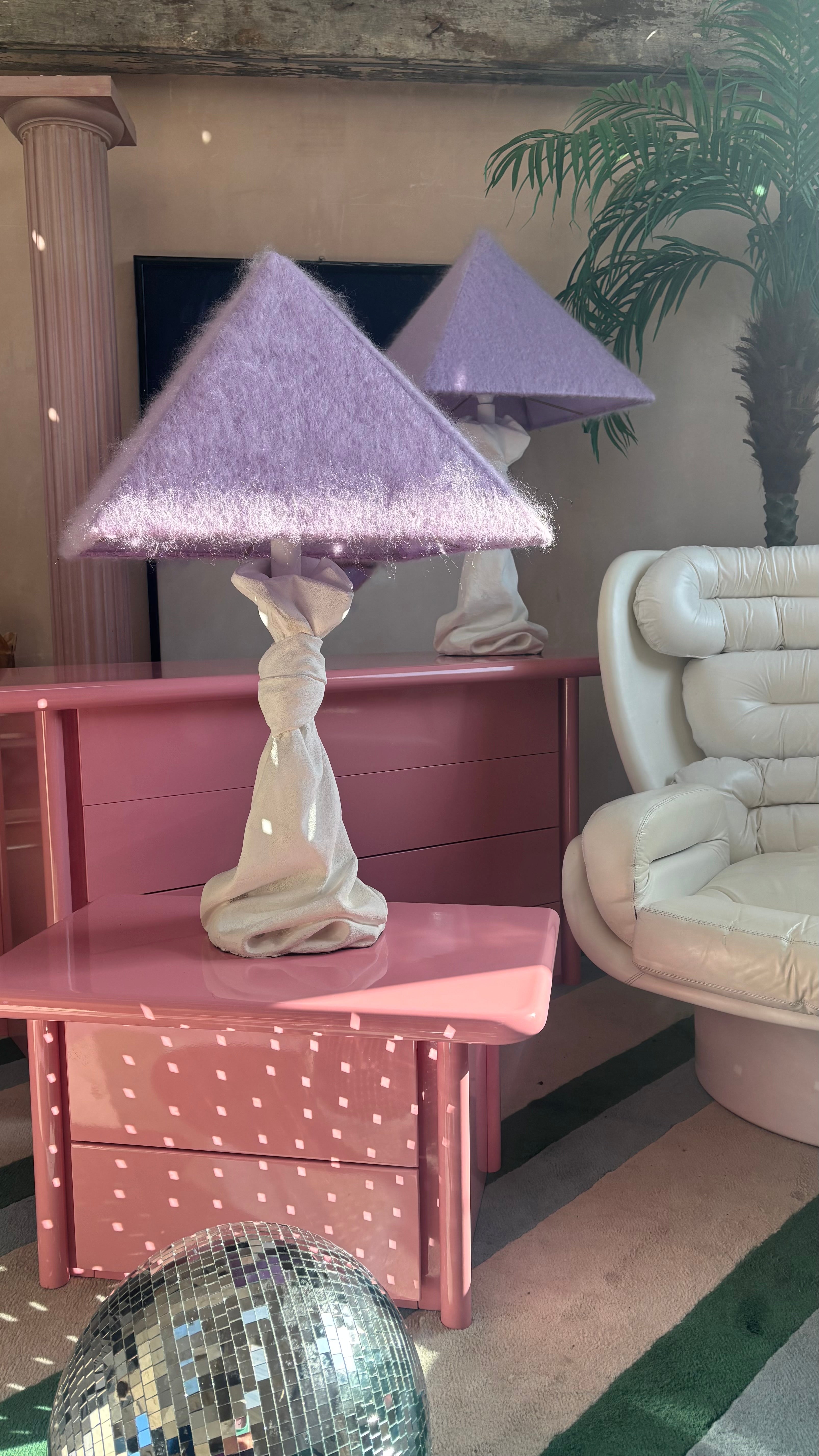 Shown in the pictures with a 50cm Pointe lampshade in Lilac Mohair.