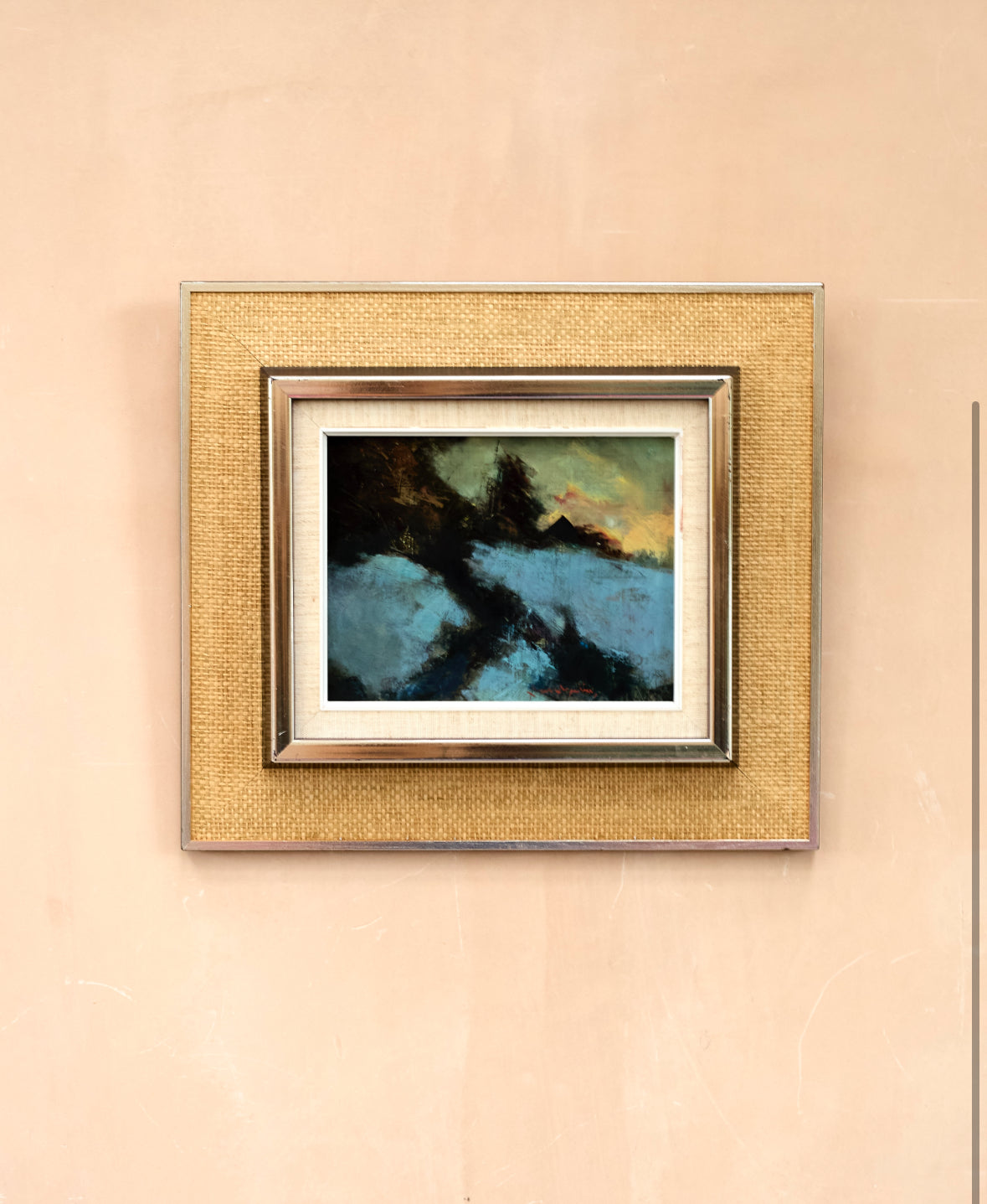 Winter landscape, Mid century framed oil painting